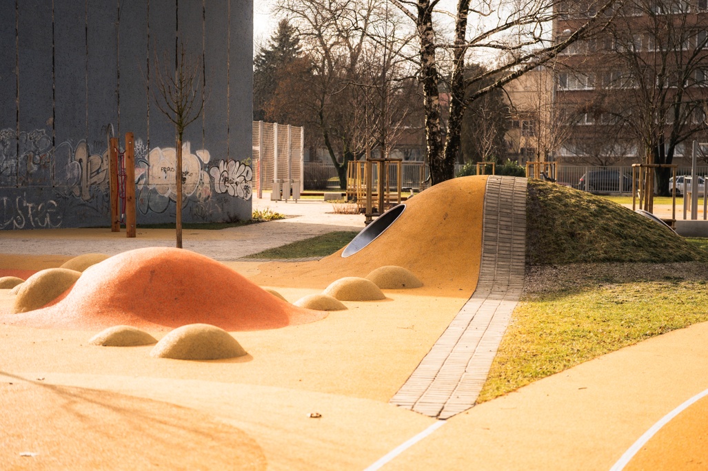 Nosnou ideou návrhu bolo vytvoriť hravý a podnetný priestor na hru a oddych detí, doplnený o rozsiahle sadové úpravy – výsadbu stromov, krovín, trvaliek a trávnikov. V rámci sadových úprav boli vybudované aj závlahy.